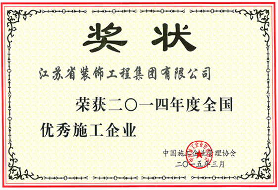 星空网页版登录入口被评为2014年度全国优秀施工企业